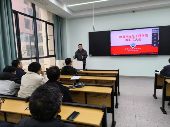 3月13日下午,太阳成tyc122cc在16教B101教室召开全院教职工大会暨师德师风专题学习会。学院党委书记凌新华主持会议,全体教职工参加会议,围绕《新时代高校教师职业行为十项准则》主题,进一步强化师德师风建设,筑牢立德树人根基。
