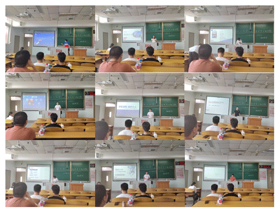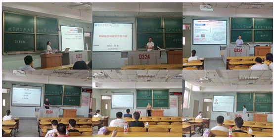 在导师代表介绍研究生培养心得及学术讲座环节,裴启明副教授代表生物物理团队、雷磊副教授代表原子分子物理团队、郑定山副教授代表光电子器件团队、水涛副教授代表量子光学与精密测量团队、陈艳老师和杨康老师代表纳米光子学团队对各团队的基本情况、研究方向、获得荣誉及招生情况进行了介绍。