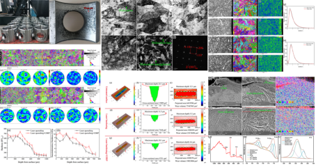 针对石油装备中高压阀门等关键部件长期依赖流程复杂、自动化程度低的渗碳强化工艺这一行业共性问题,雷磊副教授团队发展了“激光硬化+超声表面滚压”协同强化工艺。该工艺在材料表层构筑具有“反常晶粒梯度-纳米位错网络”的跨尺度强化结构:激光加热高效率制备深层反常晶粒梯度硬化层,后续超声滚压在粗晶马氏体中引入高密度纳米位错网络,协同碳过饱和固溶强化使表层纳米硬度提升至10 GPa以上,突破了经典“粗晶软化”理论认知,并显著提升了材料的耐磨性。此外,研究所采用的激光加热机器人与数控滚压设备与工业数字化产线具备良好兼容性,有望为探索替代传统渗碳工艺、推动绿色高效的全程自动化生产提供一种可行路径。
