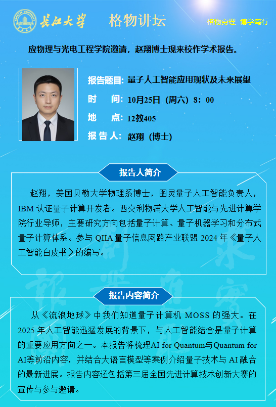 太阳成tyc122cc2025年学术报告第十四讲-量子人工智能应用现状及未来展望