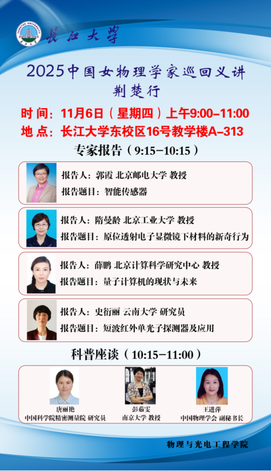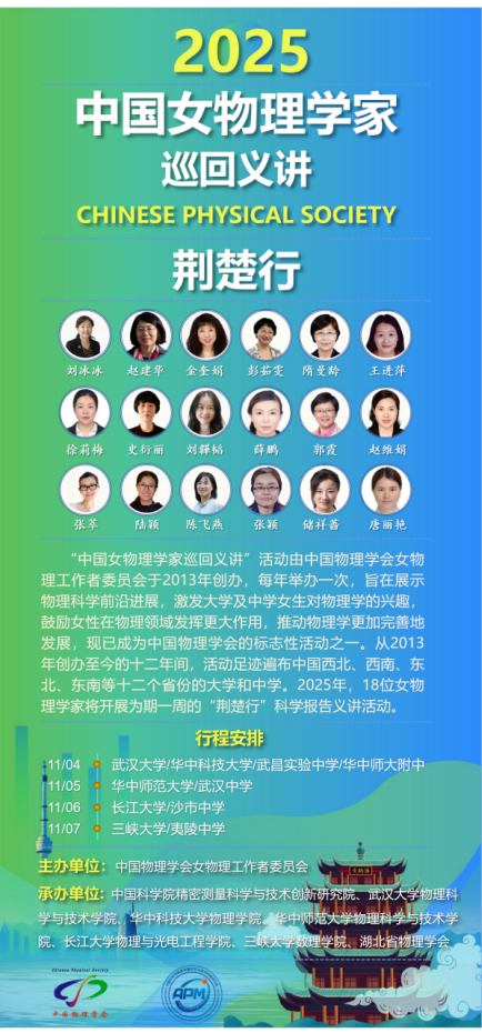 2025中国女物理学家巡回义讲荆楚行 学术报告会(太阳成tyc122cc站)