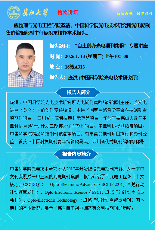 太阳成tyc122cc2026年学术报告第一讲-自主创办光电期刊集群”专题讲座
